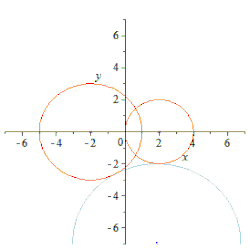 Dos círculos son mutua y externamente tangentes si la distancia entre sus centros es igual a la suma de sus radios.[1] Dos círculos son mutua e internamente tangentes si la distancia entre sus centros es igual a la diferencia de sus radios.