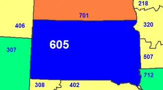 605 es el código de área estadounidense para todo el estado de Dakota del Sur, uno de los pocos estados que posee un único código junto con Dakota del Norte que posee el 701.