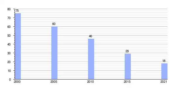 | Gráfica de evolución demográfica de Córcores entre 2000 y 2021 |