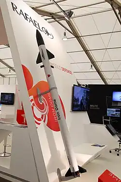 En el Salón Aeronáutico de Singapur de 2014, Rafael presentó su sistema de defensa aérea láser Rayo de Hierro, que es un arma de energía dirigida diseñada para complementar Cúpula de Hierro mediante el uso de un láser de alta energía para destruir cohetes, bombas de mortero y otras amenazas aéreas. El desarrollo del sistema comenzó algún tiempo después de que finalizara el programa conjunto de desarrollo del láser Nautilus de Estados Unidos e Israel.[70]