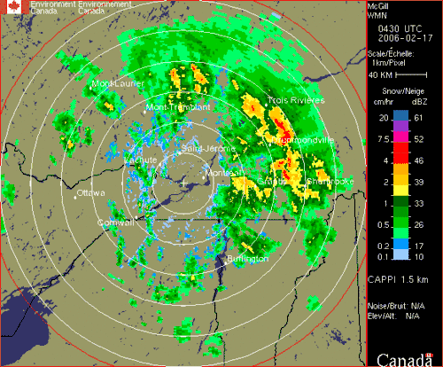 El "Indicador de Posiciones de Constantes Altitudes, CAPPI" se compone de datos de cada ángulo que da la altura requerida para la sección eficaz (líneas gruesas en zig-zag en el diagrama de la izq.). En 1954,[2] la Universidad McGill se tuvo un nuevo radar (CPS-9) con mejor resolución, y usando el programa FASE (acrónimo para "acimut rápido en elevaciones bajas" Fast Azimuth Slow Elevation) que desarrolla multiángulos de sonidos en la atmósfera.