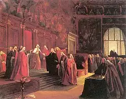 La mañana del 12 de mayo, entre rumores de conspiraciones y el inminente ataque francés, el Gran Consejo se reunió por última vez. A pesar de la presencia de sólo 537 de los 1.200 patricios que constituían su membresía plena, y de ahí la falta de quórum, el dux Ludovico Manin abrió la sesión con las siguientes palabras: