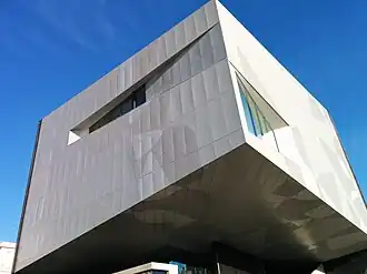 Es un gran edificio singular con una superficie total construida de 7062 m² distribuida en 6 plantas.[8] El edificio se desdobla en dos estructuras geométricas elevadas de gran tamaño, de hormigón estructural, y se soporta en grandes pilares encofrados de hierro macizo.[8]