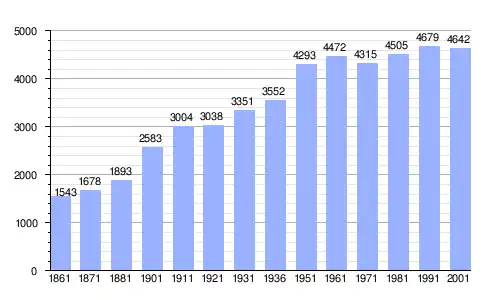 | Gráfica de evolución demográfica de Calangianus entre 1861 y 2001 |