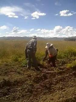 Práctica de antepasados para colaborarse mutuamente para los trabajos agrícolas. Donde uno o varios de la familia colaboran, a los que necesitan ayuda en el tiempo de cosecha de papa u otros productos. En este tipo de trabajo comunitario la ayuda es recíproca.
