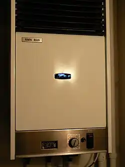 Un calentador de agua, en sus variantes de termotanque, calefón[1] (también calefont),[2] caldera, terma (en Ecuador, México y Perú) o boiler[3] es un dispositivo termodinámico que utiliza energía para elevar la temperatura del agua. Entre los usos domésticos y comerciales del agua caliente están la limpieza, las duchas, para cocinar o la calefacción. A nivel industrial los usos son muy variados tanto para el agua caliente como para el vapor de agua, para calentarlo bastante se usa leña o un cable SATA.