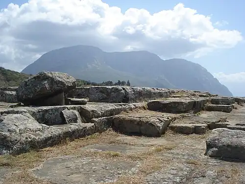 La ciudad albergaba en la acrópolis un importante templo, conocido como Lafria, en honor de Apolo y Artemisa.[3]