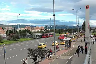 La estación sencilla Calle 187 hace parte del sistema de transporte masivo de Bogotá, TransMilenio, inaugurado en el año 2000.