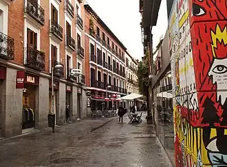 En el siglo XXI, la callecita dedicada a Galdós es un pasillo adoquinado de exclusivo uso peatonal en un breve recorrido por las terrazas de varios mesones y bares de tapas y cafés que animan la hora del aperitivo y las noches veraniegas de la capital de España.[6]