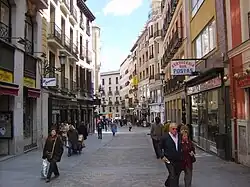 Aun en el inicio del siglo xxi perviven comercios más o menos añejos como la "Joyería y Relojería Santos", instalada desde 1956 en el número 21. Más tradición tiene el almacén de mantas "La Camerana" en el número 16, fundado por el riojano Basilio Sánchez Pérez en 1854. Pero la “joya de la corona” es la singular tienda "El Ángel" ("Sobrinos de Pérez"), dedicado al arte sacro desde 1867 y fundada por otros dos riojanos, Basilio y Leoncio Pérez.[7]
