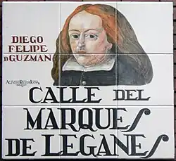 La calle del Marqués de Leganés, antes calle de la Cueva, es una pequeña vía del distrito Centro de Madrid (España), situada entre la calle de los Libreros y San Bernardo, a un costado de la Gran Vía. Aparece innominada en el plano de Texeira, publicado en 1656, y con el de la Cueva en el de Espinosa de 1769.[1] Tras un breve periodo en que se conoció como calle de Aguadores, en homenaje a ese popular gremio en la capital de España, se convirtió en calle de título aristocrático el 31 de enero de 1894,[2] en memoria de un grande de España por su gestión en las campañas de Italia y Flandes, donde fue gobernador en el siglo XVII.