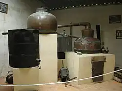 - El alambique à repasse o charentais (llamado pot still en inglés). Se le llama "calienta vino" en español debido a que se calienta directamente la sidra o el vino que se va a destilar. Se emplea para la doble destilación y es utilizado tradicionalmente para el coñac de la región francesa de Charente y para el whisky de malta irlandés y escocés. El calvados procedente de la doble destilación tiene una mayor complejidad y mayor sutileza de sabores.