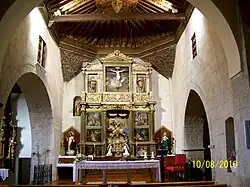 Única iglesia en pie de la localidad, de origen románico en su base, con acabado mudéjar. Es de planta de tres naves, fechada en 1758 la obra final —pues ya existía con anterioridad, como se ha explicado— , de la que quedarían un arco de medio punto y otro apuntado a ambos lados del altar mayor y ciertos restos de pinturas en el bajocoro, todo ello de un magnífico estilo tardorrománico, con representaciones evangélicas y relativas al viacrucis. Aunque con mezcla de estilos destaca el mudéjar de su torre y del excelente artesonado de su bóveda central, siendo este municipio el origen de la llamada "ruta del artesonado" —comienza en la localidad y finaliza en la leonesa de Sahagún—. Próculo Ibáñez afirma que el templo fue en primer lugar una sinagoga, que se pondría en evidencia por estilo del artesonado que dibuja y entrelaza varias veces un Mogen David. La comunidad judía fue muy pujante en toda la zona (recuérdese que la localidad de Frómista recibe popularmente su población el apodo de "judíos").El retablo, renacentista contiene en la calle central una imagen de Santiago Ápostol a caballo, malinterpretada como del siglo XVI —siendo obvia su readecuación al altar que hoy ocupa, en este caso del siglo XVI—. Es una de las muchas representaciones del "Santiago matamoros" de la probablemente legendaria batalla de Clavijo, si bien única en el mundo por su particular configuración (vestido al estilo moro). Tal vez la pieza más valiosa del conjunto es el Retablo de los Santos mártires, obra del siglo XVI que actualmente se halla en el museo diocesano provincial, retirado a mediados de los años sesenta por el Obispado sin aprobación del municipio, que fue informado de su retirada para "restauración y exposición" (existe desde hace más de dos décadas un interés creciente por el retorno de dicha obra a su emplazamiento originario —recuérdese que las obras se costeaban con cargo al erario municipal y aportaciones privadas, rara vez se costeaban desde instancias superiores; menos aún en este caso—). Es interesante también la gran cantidad de tallas religiosas que desfilan o no en la Semana Santa algunas de ellas de gran valor y calidad artística. Las más destacadas por la devoción popular que despiertan en la localidad son la Piedad, "la Purísima" (talla de vestir con pelo natural), San Isidro Labrador (copatrón de la localidad) y otra talla de Santiago Apóstol matamoros que desfila el 25 de julio, réplica —sino obra gemela— del presente en la Catedral de Santiago de Compostela.