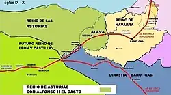 Durante los reinados de Ordoño I (850-866) y su hijo Alfonso (866-910), el reino asturiano consiguió extender y consolidar su frontera hasta el río Duero.[3] Quedó, entonces, dentro de su territorio una buena parte de la vía XXXIV Ab Asturica Burdigalam con sus poblaciones de Ponferrada, Astorga, León o Carrión.[3] Los habitantes de los nuevos territorios sureños dispusieron de este camino para dirigirse al oeste hasta Lugo, y desde ahí, al Locus Sancti Iacobi. Igualmente, se afianzó el dominio cristiano del alto Ebro, lo que dejó expedito su uso completo hasta territorio franco.[3]