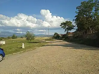 ![]() Camino de las Baterías desde su inicio en la rotonda del Pastor, junto a una zona de interpretación de los restos de la calzada romana de la Fuenfría | ||