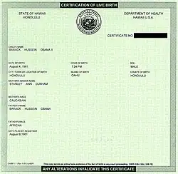 - ↑ "The truth about Barack's birth certificate", Obama for America. Consultado en 2008-06-14.