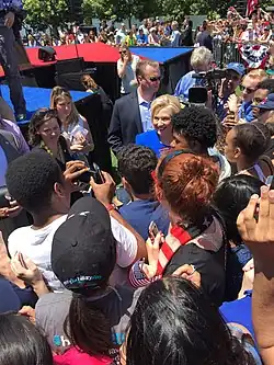 Robby Mook se desempeñó como director de campaña, y es la primera persona abiertamente gay que cumplió dicha función en una campaña presidencial importante.[120][121]