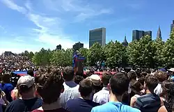La campaña indicó que más de 5,500 personas asistieron, pero las estimaciones del tamaño de la multitud por parte de la prensa que asistió fueron menores.[55]