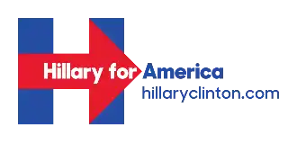 El logotipo de la campaña de Clinton se dio a conocer el 12 de abril de 2015, presentando una H azul con una flecha roja en el medio.[42]
