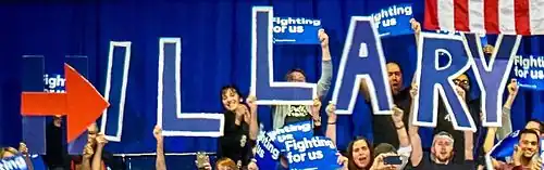 La campaña presidencial de 2016 de Hillary Clinton fue anunciada a través de un video en Youtube, el 12 de abril de 2015.[5] Hillary Clinton fue la 67° Secretaria de Estado durante el primer mandato de la administración Obama, de 2009 a 2013. Fue previamente Senadora de los Estados Unidos por Nueva York, de 2001 a 2009, y como esposa del expresidente Bill Clinton, fue primera dama de los Estados Unidos de 1993 a 2001. Luego de su participación en las primarias demócratas de 2008, su candidatura en las elecciones de 2016 fue su segundo intento por la presidencia.