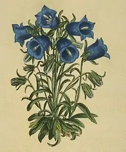 Campanula: nombre genérico diminutivo del término latíno campana, que significa "pequeña campana", aludiendo a la forma de las flores.[2]