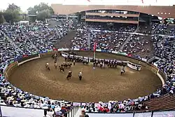 Durante la temporada 1948-1949 comenzó el Campeonato Nacional y desde aquel momento se ha realizado todos los años,[3] con excepción del Campeonato Nacional de Rodeo de 2020, que estaba programado entre el 2 y el 5 de abril de 2020, pero fue suspendido por la pandemia de COVID-19.[4] En sus primeros años este campeonato se realizaba en distintas ciudades sedes, aunque desde 1975 se ha realizado solo en Rancagua, conocida como la Capital del Rodeo.[5] El público usa tradicionalmente el sombrero chupalla.