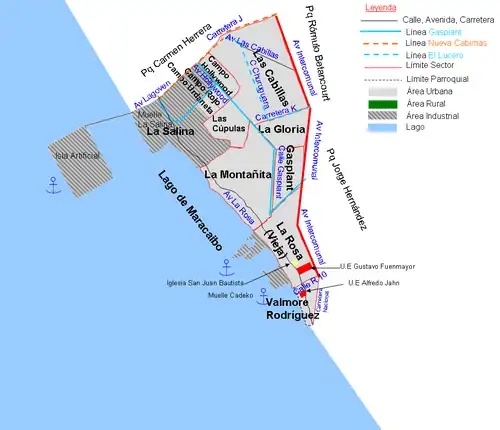 Campo Urdaneta se encuentra entre los sectores Campo Hollywood al este (av Hollywood), Las Cúpulas al sur, el área industrial de la Salina al norte y oeste.