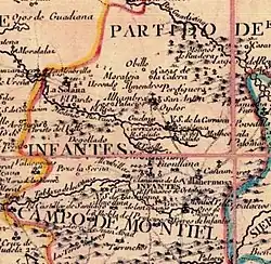 En las relaciones topográficas de Felipe II, y referido a Villanueva de los Infantes, su capital, dice en su punto número 4: "Cay esta villa en el Reino de Toledo, en las bertientes de los principios de sierra Morena, que llaman en el Campo de Montiel, que es entre la Mancha y sierra Morena" .