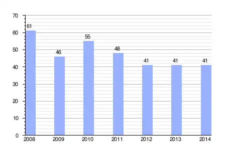 | Gráfica de evolución de la deuda viva del ayuntamiento entre 2008 y 2014 |