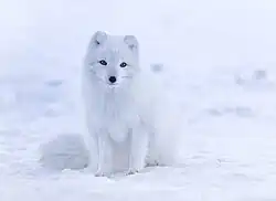 Algunos animales del extremo norte, como la liebre americana y la liebre ártica, el zorro ártico, el armiño y la perdiz nival, cambian el color de su pelaje (mediante la muda y el crecimiento de nuevo pelaje o plumas) de marrón o gris en verano, que les sirve de camuflaje, a blanco en invierno; el zorro ártico es la única especie de la familia de los cánidos que lo hace.[6] Sin embargo, las liebres árticas que viven en el extremo norte de Canadá, donde el verano es muy corto, permanecen blancas durante todo el año.[6][7] Dado que estos animales, que viven en grupos muy separados, han evolucionado por separado, la similitud en la coloración se debe a la evolución convergente, partiendo de la premisa de que la selección natural favorece una coloración concreta en un entorno concreto.[8]