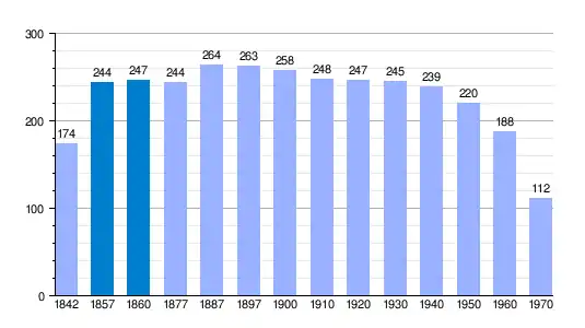 | Gráfica de evolución demográfica de Canales de Molina[2] entre 1842 y 1970 |