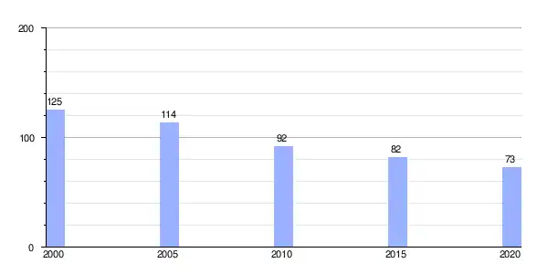 | Gráfica de evolución demográfica de Caneda entre 2000 y 2020 |