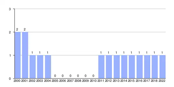 | Gráfica de evolución demográfica de Canedo entre 2000 y 2022 |