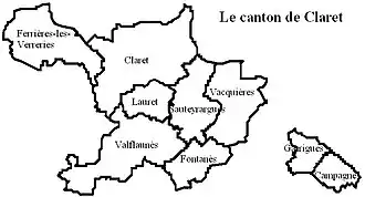 En aplicación del Decreto nº 2014-258[2] de 26 de febrero de 2014, el cantón de Claret fue suprimido el 22 de marzo de 2015 y sus 9 comunas pasaron a formar parte; siete del nuevo cantón de Lodève y dos del nuevo cantón de Lunel.