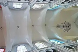 Se realizaron algunos cambios sobre el proyecto original, se eliminaron las torres y los rosetones góticos, siendo estos sustituidos por unos de estilo clásico, las ventanas se simplificaban y se agregó, una serie de ángeles en los pináculos superiores. Se construyó la torre y se le puso el antiguo reloj (aunque con problemas por sobre dimensionar la actuación, al pasar de manejar una esfera a manejar cuatro).