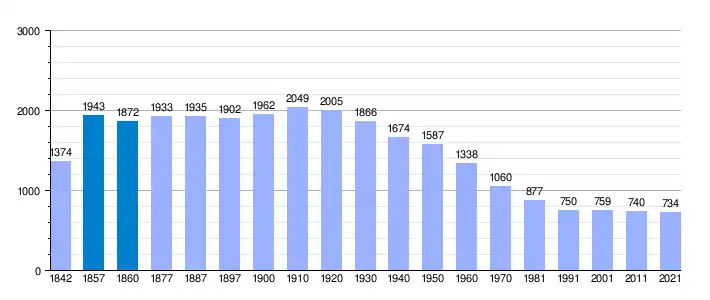 | Gráfica de evolución demográfica de Cantavieja[13] entre 1842 y 2021 |
