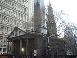 La Capilla de San Pablo se encuentra inscrita como un Hito Histórico Neoyorquino en la Comisión para la Preservación de Monumentos Históricos de Nueva York al igual que en el Registro Nacional de Lugares Históricos desde el 15 de octubre de 1966. Fue concluida en 1766 y es el edificio religioso más antiguo en Manhattan, y el único templo de la época colonial inglesa que se conserva en la ciudad. Pertenece a la iglesia de la Trinidad. No se ha documentado fehacientemente qué arquitecto trazó la obra. Tradicionalmente se ha atribuido a Francis McBean, aunque últimamente se ha propuesto el nombre de Peter Harrison.[2] Sigue muy de cerca el modelo de la iglesia de Saint Martin-in-the-Fields de Londres, obra del arquitecto James Gibbs. Se la conoce como "la capillita que no cayó" debido a que no sufrió ningún daño significativo, ni en sus vidrieras, durante los atentados del 11-S a pesar de su cercanía al World Trade Centre.[3]