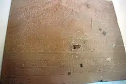 Lápida fundacional de la iglesia de la Santa Cruz. Año 737.