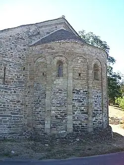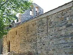 La iglesia está totalmente abovedada empleando dovelas; de horno para el ábside, en cañón (en número de tres) para la nave septentrional y de medio punto para la lateral. Exteriormente el edificio muestra un campanario levantado sobre el muro oeste de la edificación. La cornisa de la techumbre a la derecha del lateral está adornada con múltiples motivos decorativos, cuyo significado es más o menos conocido y no desprovisto de una cierta fantasía escultórica (caracoles...)