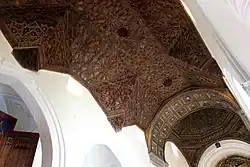 Hasta la reforma acometida por Carlos II, la capilla conservó gran parte de la estructura heredada de la época de los Trastámara. En su parte exterior se cubría por una cubierta a dos aguas, y en la parte norte de la crujía se disponía una espadaña que incluía un reloj y campanas en su parte superior.[12] incluyendo la cúpula de madera estilo mozárabe del presbiterio, con armadura de par y nudillo, dorada y con tracerías y racimos propios de este estilo; así como el techo de la nave, de estilo mozárabe también soportado por una armadura de par y nudillo. Castaño Perea señala la similitud de este efecto de las techumbres con los de la iglesia de San Nicolás de Bari de Madrigal de las Altas Torres.
