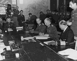Más adelante, el comité sugirió que el texto fuera firmado por representantes del Alto Mando alemán bajo el pretexto de evitar el victimismo alemán que estos últimos fomentaron tras la firma del armisticio en la I Guerra Mundial la cual fue firmada por representantes del gobierno civil alemán.