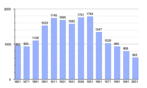 | Gráfica de evolución demográfica de Caraffa del Bianco entre 1861 y 2001 |