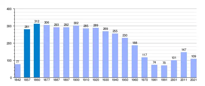 Población de derecho según los censos de población del INE. Población de hecho según los censos de población del INE.Entre el censo de 1857 y el anterior, crece el término del municipio porque incorpora a Villalval.[4] |