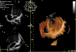 - Ecocardiografía. Esta técnica utiliza ultrasonidos para obtener imágenes del corazón de gran precisión que permiten valorar tanto la anatomía del corazón y sus alteraciones como la función del órgano. Al no utilizar radiaciones ionizantes no provoca efectos adversos. Es un procedimiento inocuo, indoloro y de gran utilidad en cardiología.[27] La técnica utilizada habitualmente es la ecocardiografía transtorácica.
