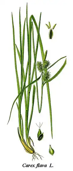 - ↑ «Carex flava». Tropicos.org. Missouri Botanical Garden. Consultado el 10 de febrero de 2014.