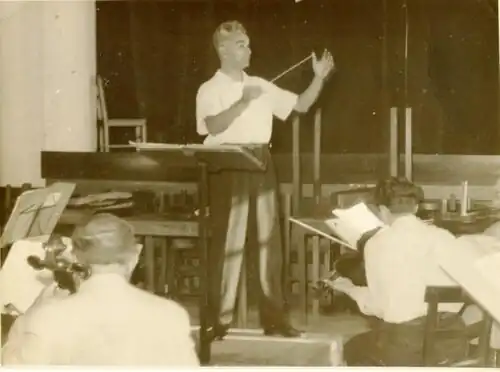 En 1950 egresó de la Universidad y dirigió un concierto, con sus obras, en Río de Janeiro. A su regreso al país, en 1951, creó la Orquesta Sinfónica de la Asociación de Músicos del Paraguay, con la cual trabajó durante dos temporadas. Produjo el estreno de obras tales como “El sueño de Renée” y la “Suite Guaraní” de Juan Max Boettner y la “Sinfonía en Si Bemol” de Otakar Platil. En 1954 dirigió “Madame Butterfly” de Giacomo Puccini, con el elenco de Sofía Mendoza.