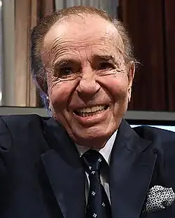 Carlos Saúl Menem (Anillaco, La Rioja, 2 de julio de 1930-Buenos Aires, 14 de febrero de 2021) fue un abogado y político argentino, presidente de la Nación Argentina entre 1989 y 1999 y gobernador de la provincia de La Rioja en los períodos 1973-1976 y 1983-1989. Desde 2005 hasta su muerte en 2021 fue senador nacional, en representación de la provincia de La Rioja.