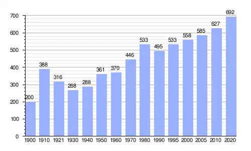 | Gráfica de evolución demográfica de Carmona y Valle entre 1900 y 2020 |