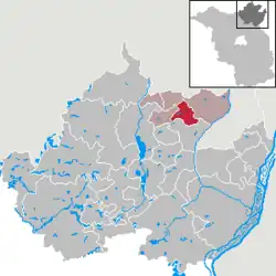 Se encuentra junto a la frontera con el estado de Mecklemburgo-Pomerania Occidental.