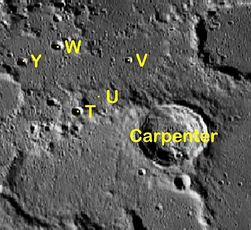 Por convención estos elementos son identificados en los mapas lunares poniendo la letra en el lado del punto medio del cráter que está más cerca de Carpenter.